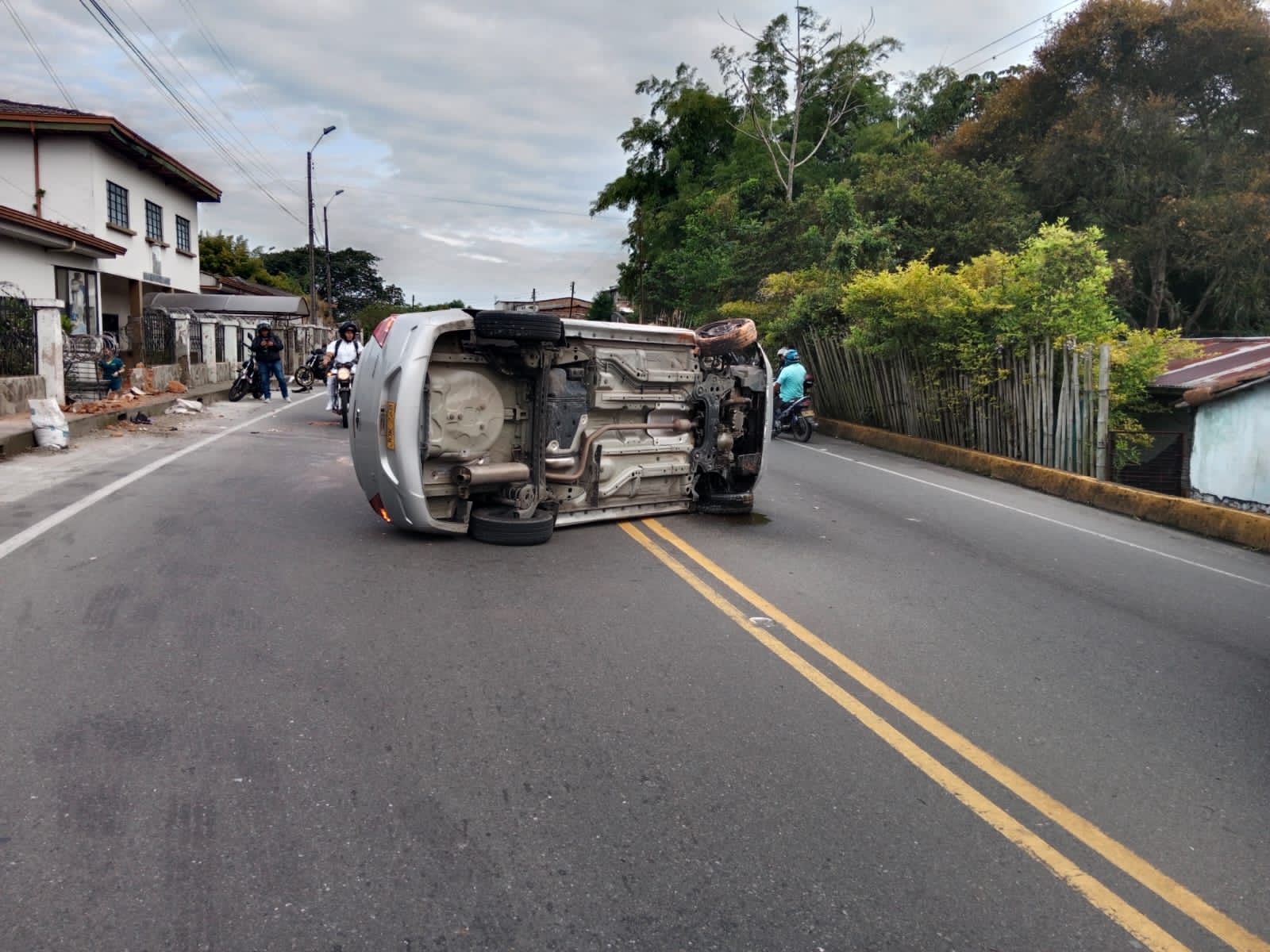 Según la información de testigos se movilizaban a alta velocidad por la zona cuando de repente se escuchó un estruendo el vehículo se estrello contra el muro y se volcó se presentaron daños materiales conductores y vecinos del sector auxiliaron a las personas que viajaban en el carro y dieron aviso a las autoridades de Calarcá.