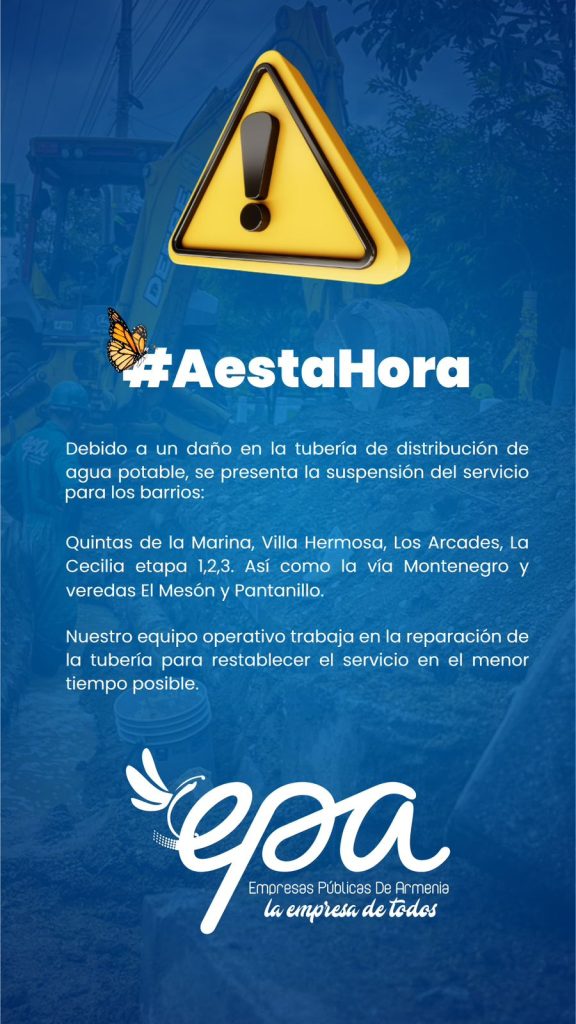 LO NUESTRO Operarios de EPA atienden daño en la tubería en barrios de la Comuna Tres en Armenia. PilasArmenia 20 de octubre de 2025 Navegación de entradas Previous: Con 37 delegaciones y 400 participantes, finalizó el XII Curso Nacional de Actividad Física en el Quindío Más historias LO NUESTRO Gobernador respalda la fuerza laboral de las mujeres Camineras PilasArmenia 18 de octubre de 2025 LO NUESTRO La Uniquindío se acercó a otros departamentos con educación a distancia PilasArmenia 17 de octubre de 2025 LO NUESTRO EDEQ fortalece la calidad del servicio con importantes inversiones en 2025 PilasArmenia 16 de octubre de 2025
