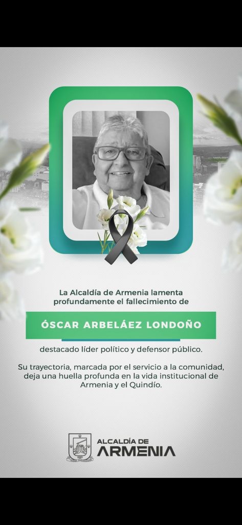 CIUDAD Alcalde James Padilla, envió mensaje de condolencia por muerte de Óscar Arbeláez Londoño PilasArmenia 2 de diciembre de 2025 Navegación de entradas Previous: Alcalde James Padilla, envió mensaje de condolencia por muerte de Óscar Arbeláez Londoño Más historias CIUDAD Alcalde James Padilla, envió mensaje de condolencia por muerte de Óscar Arbeláez Londoño PilasArmenia 2 de diciembre de 2025 CIUDAD Diciembre llegó con más operativos de seguridad en comunas de Armenia PilasArmenia 2 de diciembre de 2025 CIUDAD Cierre vial por obras del intercambiador vial de Armenia PilasArmenia 30 de noviembre de 2025